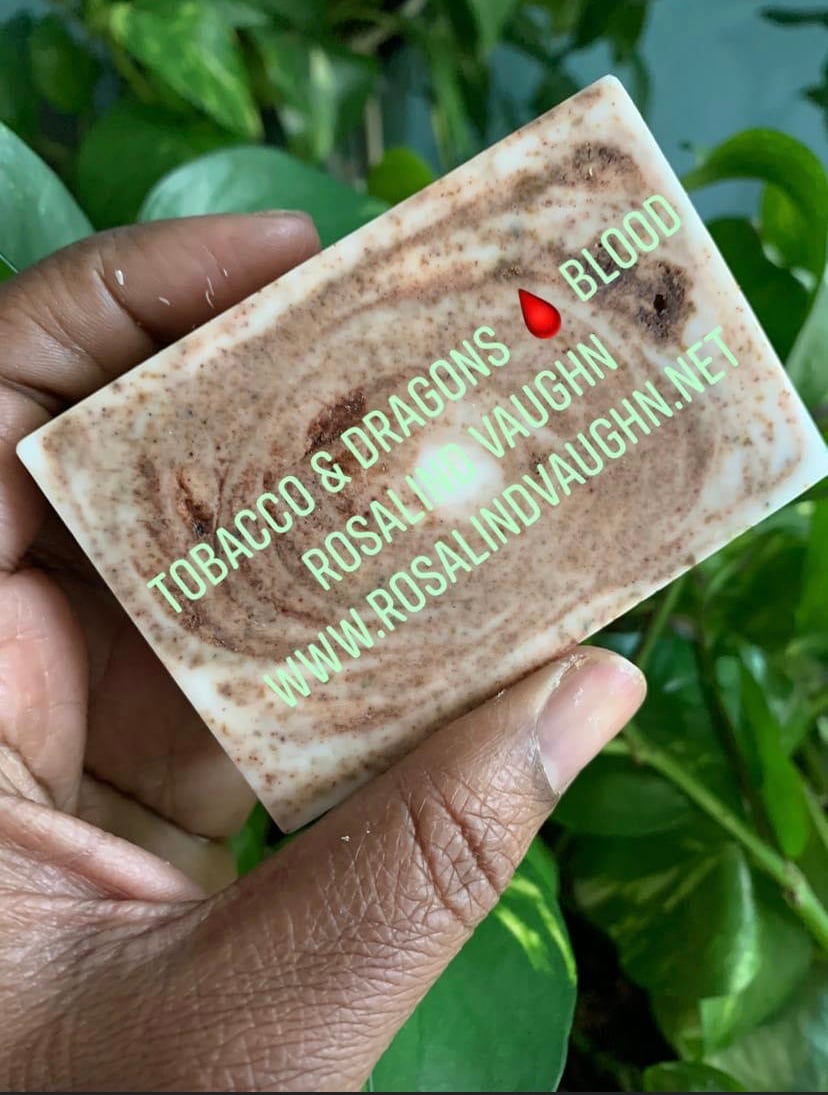 Tobacco and Dragons Blood Rootwork Soap is conjured with pure dragons blood resin and tobacco to cleanse and give protections and a feeling of peace to your energy in this luxurious Shea butter base. There are also beautiful oils added to give it such a delicious and captivating scent.